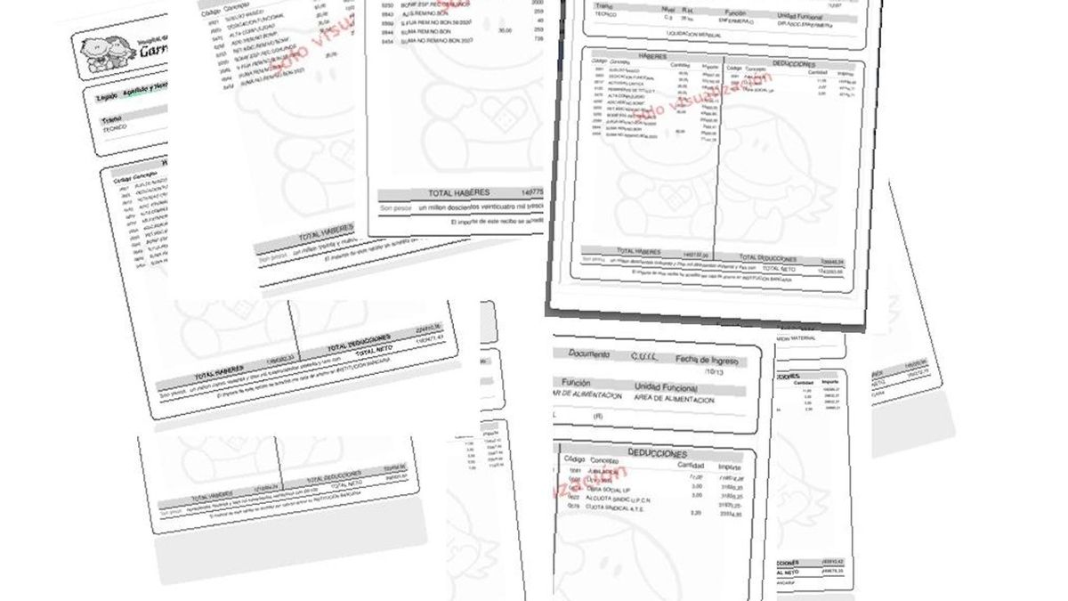 Según los recibos de sueldo correspondientes a agosto, un enfermero del Garrahan con 35 horas semanales de tareas cobró entre $849.678 y $1.243.283, dependiendo de su categoría y antigüedad. Un técnico del hospital especializado en hemodiálisis, con 42 horas semanales, recibió $1.039.101 de salario neto. Un auxiliar administrativo cobró $958.372, mientras que un auxiliar de jardín obtuvo $849.678. El caso de Gerardo Oroz, delegado de ATE y auxiliar de farmacia, es ilustrativo: “Mi salario es de $960.000 y el inicial en mi categoría es de $800.000. La diferencia, incluso con años de antigüedad, es muy baja”, dijo a elDiarioAR.